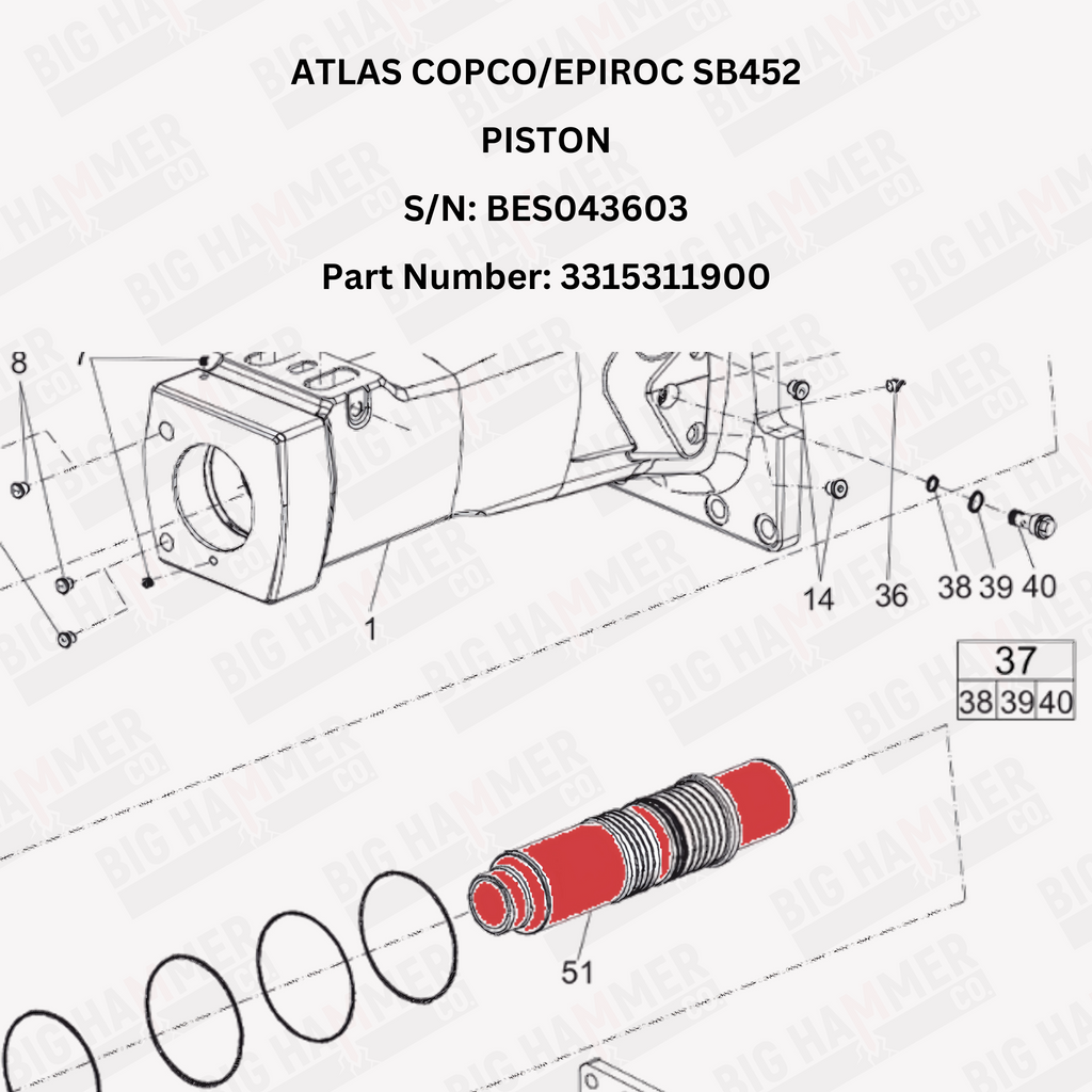 Our pistons are a direct fit for your Atlas Copco/Epiroc SB452. The OEM part number is: