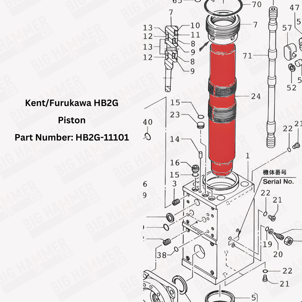 Our Piston is a direct fit for Kent/Furukawa HB2G. The OEM part number is HB2G-11101.